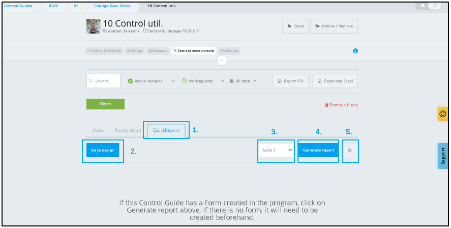 By accessing "Data and measurement" of any Control Guide, user has different data reporting of its content.
