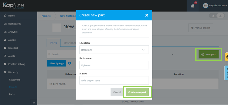 3. Create a Part inside the project: by clicking on "New Part" button, as shown in picture below. Then just add the requested information and click on "Create New Part".