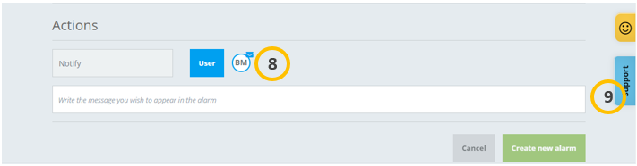 8. Users: user or users who need to receive the alarm notification as well as whether they should also receive it by email (email dark symbol) or not (email light symbol)